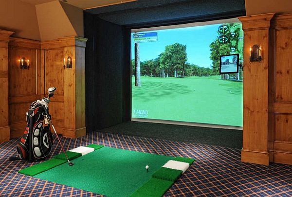 - Custom millwork gives a rich feeling to a dominant electronic feature, such as a video golf course. Home game room via Homedit Interior Design and Architecture