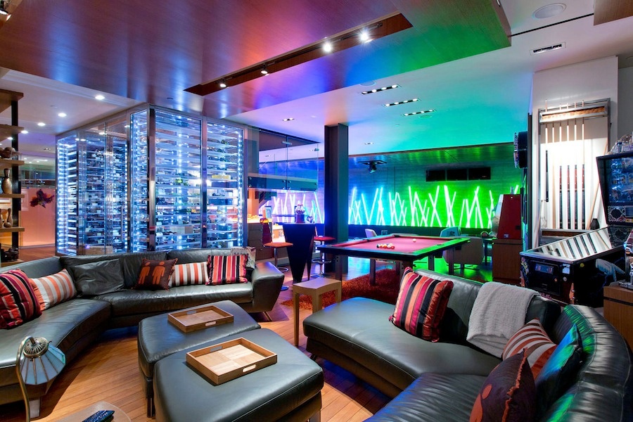 - With a distinctly adult party feel, this home lounge uses creative lighting and luxurious built-in features such as wine storage and banquette seating to make a space for entertaining and relaxing that beats the heck out of the drive home from the club.